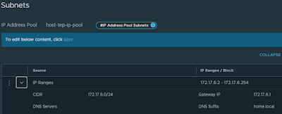 If NSX-T is installed, you should see vmk10, possibly vmk11 if you installed 2 teps, additionally vmk50 which is used in designs that use container networking. In my simple lab, I only have vmk10 and vmk50.